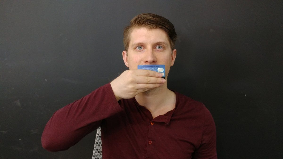 3. Place any card approximately the size of a credit card under your nose and snap a pic.
